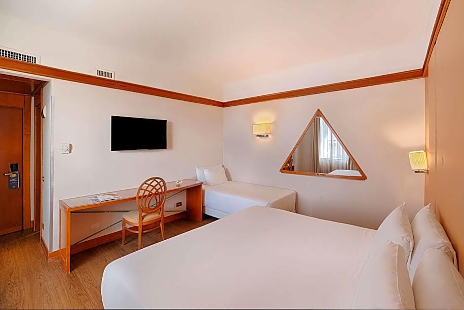 Providing free toiletries, this family room includes a private bathroom with a bath, a bidet and a hairdryer. The spacious air-conditioned family room provides a flat-screen TV with cable channels, soundproof walls, a mini-bar, a wardrobe as well as city views.